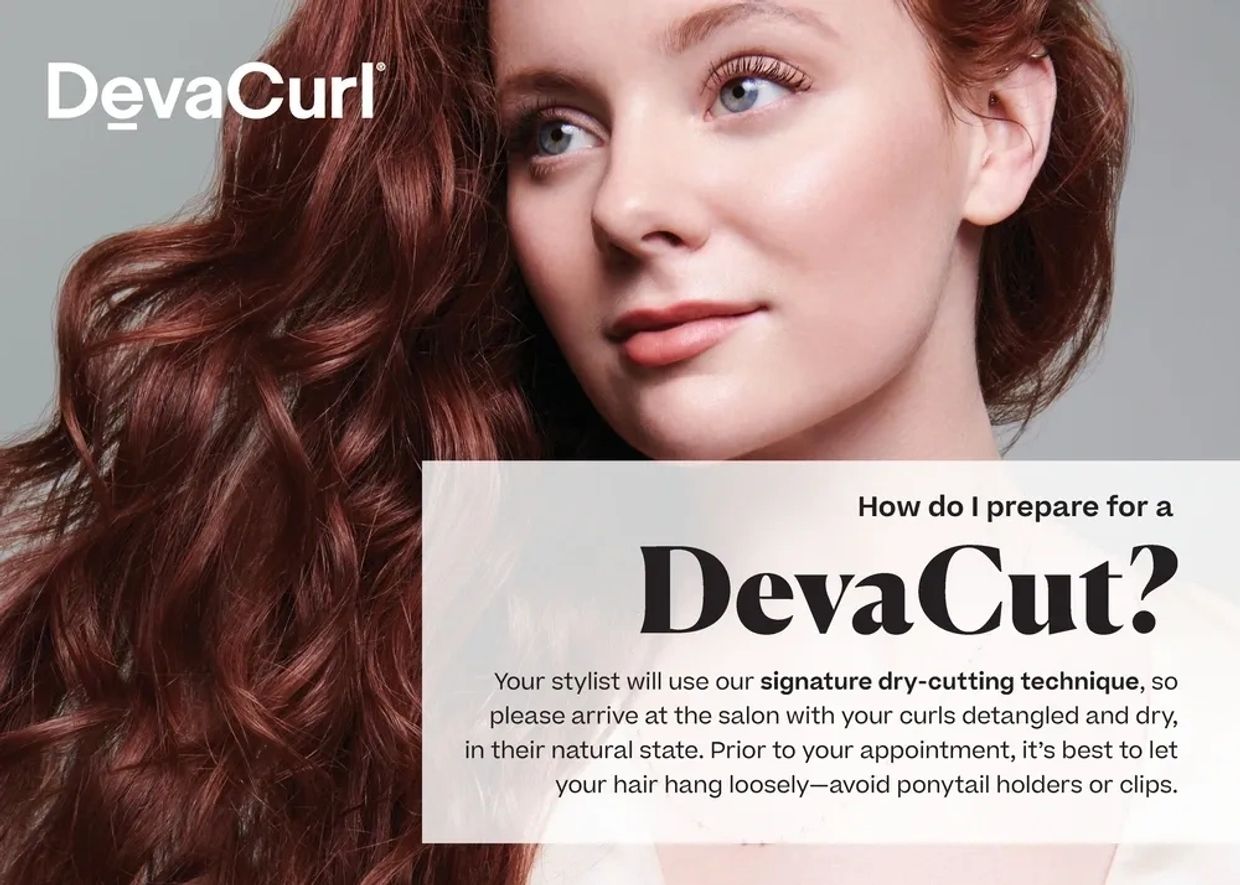 Please arrive to your appointment with your hair cleansed, de-tangled, styled how you generally wear it and completely dry. Product is okay but no ponytails, buns, headbands, clips, etc. should be worn in the hair in order to prevent disruption of its natural curl pattern. This is called being "Deva Ready" and it allows the stylist to properly and accurately cut your hair in its naturally curly state.